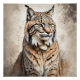 A Bobcat with detailed watercolor with expressive eyes is portrayed against a soft, blurred background. The natural colours enhance the lifelike appearance.
