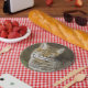 A pastel portrait of a shy and beautiful Bobcat adorns these paper plates.