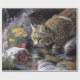 Bobcat with Wildflowers Scenic Art Decoupage Wrapping Paper