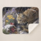 Bobcat with Wildflowers Scenic Art Sherpa Blanket