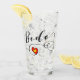 Drinking glass with Bodø flag in a heart, with scripted font design.