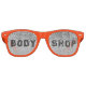 An auto repair sign in gritty black and white has been divided in half to make these fun glasses.