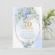 Bohemian 70th Birthday Blue Floral Gold Invitation