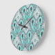 Bohemian Aqua Turquoise Ikat Tribal Art Pattern Large Clock