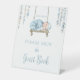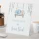 Blue elegant watercolor baby boy sleeping on the swing with floral bohemian baby boy shower guest book sign.