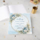 This guest book provides a beautiful space for guests to leave their names, messages, and heartfelt wishes. The soft blue floral palette paired with airy greenery creates a calm, romantic look that complements a wide range of décor styles, from classic and formal to bohemian and contemporary. The gold glitter frame adds a subtle touch of luxury without overpowering the design.