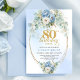 Bohemian Blue Peony Floral Gold Frame 80th Invite