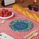 This design features a vibrant and whimsical theme with cacti and blooming flowers as the primary motifs, creating an inviting desert garden atmosphere. The circular layout is centered around elegant typography that adds a touch of sophistication to the playful background. With its rich color palette of blues, greens, and pinks, it exudes a cheerful and romantic mood perfect for a wedding celebration. Ideal for adding a unique flair to your special day, this design can be customized to fit various occasions, making it versatile for any couple looking to celebrate in style.