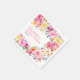 This bridal shower party napkin showcases a lively and vibrant hand-painted floral design, perfect for adding a burst of colour to any celebration. The design features a stunning array of watercolor blooms in bright pinks, soft peaches, cheerful yellows, and delicate greens, all arranged in a beautiful border that frames the personalised text in the centre. The modern script font adds a chic touch, making the napkin both stylish and functional. Ideal for a spring or summer bridal shower, this napkin brings a joyful and festive atmosphere to the event, enhancing the overall decor with its charming and fresh look.