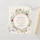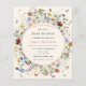 This is a bohemian budget friendly butterfly and floral baby shower invitation. The design features sweet and whimsical butterflies and bees around a halo of beautiful, summery delicate wildflower florals in pretty shades of blue, terracotta, pink, rust, purple and yellow.