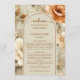 The most trendy wedding colour scheme is terracotta, and this elegant boho wedding program captures that timeless, romantic vibe in the most beautiful way. Designed in soft watercolor tones, it features terracotta and ivory flowers gracefully accented with sage green leaves — a natural, earthy palette that radiates warmth and sophistication. Perfect for modern, rustic, or minimalist weddings, this design complements both outdoor and indoor celebrations with ease. Customise the layout with your ceremony details, wedding party names, or special thank-you message to create a unique keepsake your guests will cherish. The blend of terracotta, ivory, and sage makes this program a perfect match for today’s most loved wedding trends — blending boho charm, natural elegance, and refined style into one stunning design.