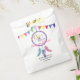 Bohemian dream catcher fairy tale Once upon a time Princess birthday party favour bags, Personalised with name and text, Birthday party flags can be removed if necessary a beautiful dream Cather if soft pastel pink, blue and lilac colour with Once in gold foil image