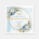Elevate your Quinceañera celebration with these elegant paper napkins, beautifully designed with watercolor dusty blue flowers, soft eucalyptus greenery, and a shimmering gold glitter frame. The delicate floral arrangements in boho, bohemian, or watercolor styles paired with elegant script lettering create a refined, sophisticated look that perfectly complements any pastel or dusty blue themed party.