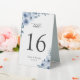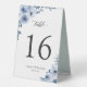 Bohemian Dusty Blue Floral Wedding Table Number Tent Sign.