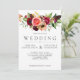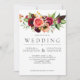 This wedding invitation showcases a vibrant floral design across the top, featuring a mix of colorful blooms and lush greenery that evoke a cheerful, garden-inspired atmosphere. The text is elegantly arranged in a combination of serif and script fonts, lending a refined and celebratory tone. Key event details—including the date, time, and outdoor venue—are clearly presented, with a warm note about dinner and dancing to follow. The overall aesthetic blends natural beauty with formal charm, perfect for a festive outdoor celebration.