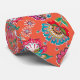 Stylish bohemian flowers folk art pattern tangerine orange floral tie.