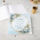 This guest book provides a beautiful space for guests to leave their names, messages, and heartfelt wishes. The soft blue floral palette paired with airy greenery creates a calm, romantic look that complements a wide range of décor styles, from classic and formal to bohemian and contemporary. The gold glitter frame adds a subtle touch of luxury without overpowering the design.