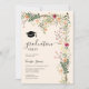 Class of 2024! Bohemian meadow pastel wild flowers spring summer 3 photos graduations party with pretty wild country flowers in boho retro orange,red, peach, green leaves, fern and more, with a brushed script typography on an elegant editable soft beige ivory background.