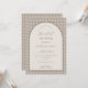 A bridal shower design featuring one of the season's trendiest prints - an open rattan weave pattern and in an arch shape format. On the back there is a simple and modern couples monogram.