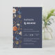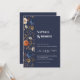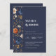 Bohemian Painted Flowers Navy Blue Rust Wedding Invitation