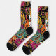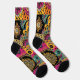 A vibrant bohemian patchwork design with intricate mandalas, paisley motifs and ornamental floral elements. This pattern blends bold colours like orange, teal, magenta and black, creating an exotic and decorative Socks. Ideal for those who love boho, ethnic and folk art aesthetics.