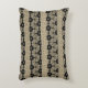 This lumbar throw pillow has an strippedr print of tiles with black and tan pattern on one side. On the reverse side it has shades of tan sand and cream. Look for the matching Duvet cover. These patterns come from original tile designs from Oregon tile maker Fay Jones Day.