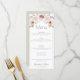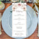 Add a romantic, bohemian touch to your reception table with this elegant wedding menu featuring bohemian roses, watercolor florals, and soft botanical accents. A graceful boho arch frames your dinner selections, while elegant script pairs with modern typography for a clean and feminine layout. Perfect for boho-themed or garden-inspired weddings, this floral menu helps guide guests through your carefully curated courses with both style and charm.