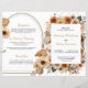 The florals in this image features a rich, earthy palette of beige, cream, muted orange, and soft brown tones. It includes elegant dahlias with layered petals, classic roses in full bloom, and delicate poppies, all interwoven with leafy foliage and small berries. The arrangement feels warm and autumnal, creating a sophisticated, nature-inspired frame that’s both lush and refined.