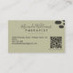 The reverse side features a calming sage green backdrop with minimalist black accents, elegantly displaying your name, title, contact details, and a convenient scannable QR code for appointment scheduling.