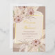 This bohemian floral frame wedding invitation features an enchanting design in earthy tones, creating a rustic and romantic atmosphere. The intricate floral arrangement forms a delicate frame, setting the perfect backdrop for the celebration. The bride and groom's names are elegantly written in shimmering gold foil, adding a touch of glamour to this charming and personalised invitation. This invitation beautifully captures the essence of a bohemian-inspired wedding with a blend of nature-inspired elements and a touch of luxury.