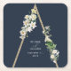 Bohemian Wood Pyramid White Florals Blue Wedding Square Paper Coaster