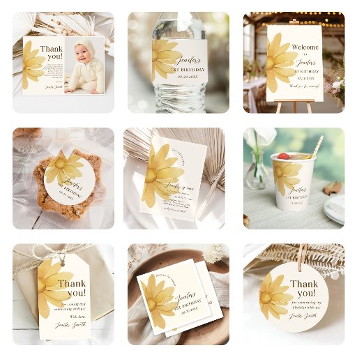 Bohemian Yellow Daisy Floral 1st Birthday Party Invitation
