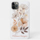This stylish phone case features a beautiful floral design, showcasing delicate outlines of various flowers and leaves in warm, earthy tones. The soft pastel background enhances the intricate details of the artwork, creating a serene and elegant look. Personalisation is available, making it a perfect gift or a unique accessory for yourself.