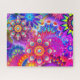 Bohemian abstract flower print puzzle. In colours of blue, pink, orange, green, blue, yellow and purple.