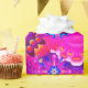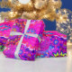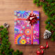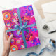 Bohemian abstract flower print wrapping paper. In colours of blue, pink, orange, green, blue, yellow and purple.