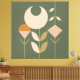 A boho inspired design of simples shapes in rustic colours of green, tan, beige, brown, and orange.