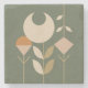 A boho inspired design of simples shapes in rustic colours of green, tan, beige, brown, and orange.