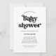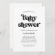 This simple and boho, black and white gender neutral baby shower invitation features retro typography.