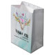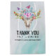 A personalised gift bag with a turquoise and pastel watercolor background. A boho chic animal skull with a floral bouquet upon its head and little butterflies fluttering about.