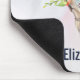 Personalised mousepad with a turquoise and pastel watercolor background. A boho chic animal skull with a floral bouquet upon its head and little butterflies fluttering about.