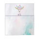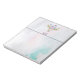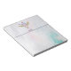 A notepad with a turquoise and pastel watercolor background. A boho chic animal skull with a floral bouquet upon its head and little butterflies fluttering about.