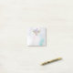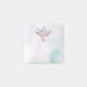 Small sqaure sticky notes with a turquoise and pastel watercolor background. A boho chic animal skull with a floral bouquet upon its head and little butterflies fluttering about.