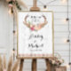 Boho Antler Floral Rustic White Wood Wedding Reception Sign Poster Template.