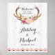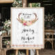 Boho Antler Floral Rustic White Wood Wedding Sign