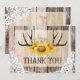 Boho Antlers Rustic Wood Sunflowers Lace Thank You Card