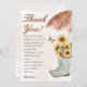 Show your appreciation with this Boho April Showers Bring May Flowers baby shower thank you card! Featuring a charming watercolor design of rain boots filled with sunflowers, a soft umbrella, and delicate butterflies, this card adds a whimsical and heartfelt touch to your gratitude. Perfect for a boho, rustic, or spring-themed baby shower, it’s a beautiful way to thank your guests for their love and thoughtful gifts!