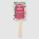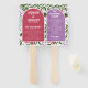 Boho arch and retro folklore flowers wedding program Hand Fan. Get ready to be blown away by this unique and vibrant wedding program hand fan! Embracing the boho vibes, this design features an arch adorned with your personalised text. But that's not all - behind the arch, you'll find a delightful blend of retro folklore branches, bursting with an array of colourful flowers. Picture a mix of deep and soothing sage green, playful peach, vivacious magenta, and dreamy lilac purple. And to make sure the couple's names stand out, they are elegantly showcased in bold typography.