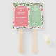 Boho arch and retro flowers wedding program Hand Fan. This wedding program Hand Fan showcases a stunning boho arch and charming retro flowers. The arch, in a lovely coral peach shade, serves as the backdrop for your personalised text, while the branches adorned with folklore-inspired flowers add a touch of vintage flair. On the reverse side, you'll find the same arch, but this time in a refreshing mint green hue. The names of the couple are elegantly written in bold typography, making them stand out. To express gratitude, the fan also includes a heartfelt 'Thank You' message, adding a thoughtful touch to your special day.