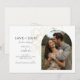 These modern minimalist wedding save the date flat cards feature a boho arch couple photo, delicate imitation gold floral elements and a contemporarty set of fonts in jet black. Flower detail is repeated at the back against a soft ivory background. This design is contemporary and chic. Perfect for the stylish and elegant couple.