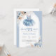 Tutu Ballerina baby shower invitation features tropical pampas grass and dusty blue flowers woven into boho arch. A blue tutu dress and soft pastel blue roses and pampas grass comes together for a classy shower invitation that is sure to impress!